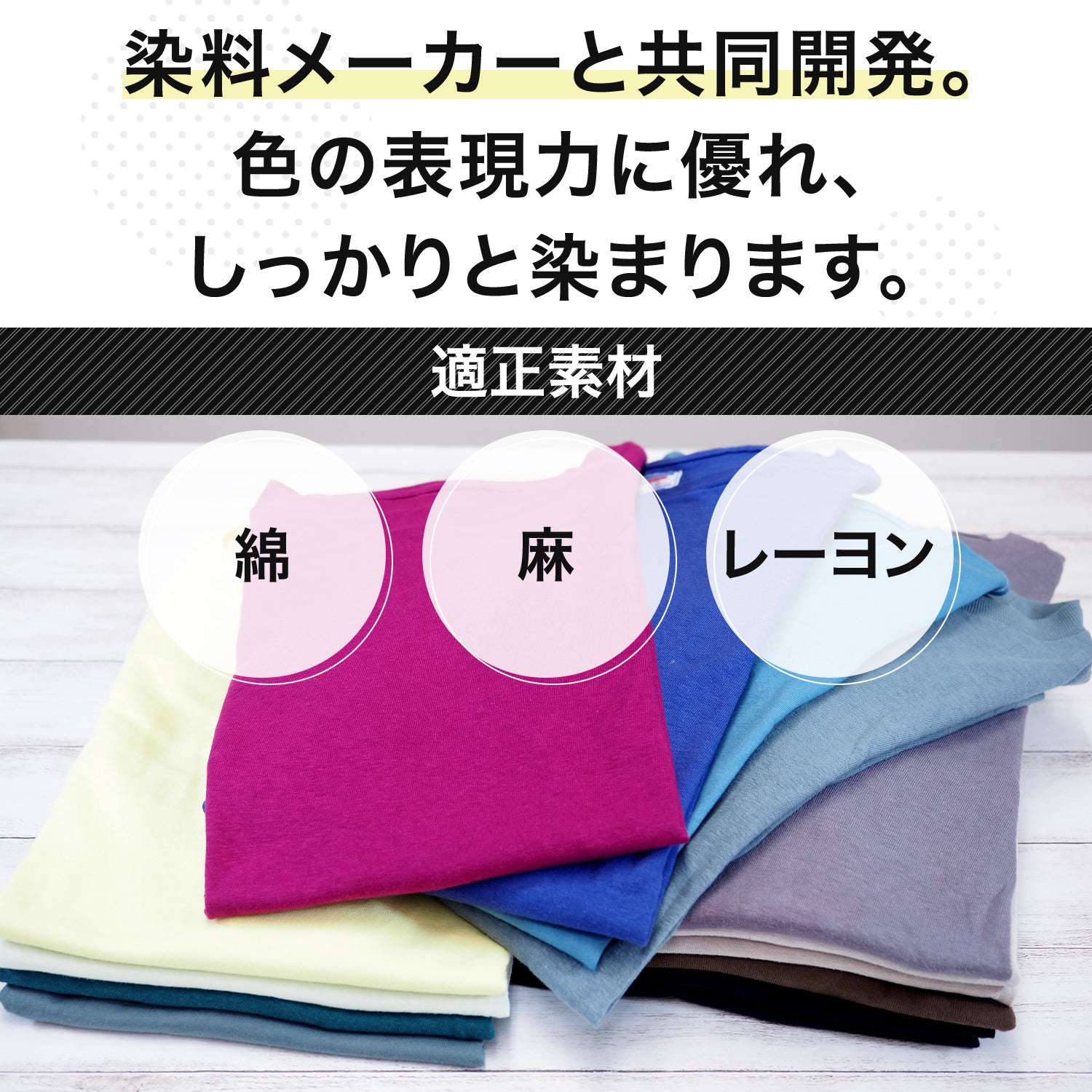 [濃色染料(Yellow・Rubine・Navy・Black)+促染剤+固着剤+均染剤+テスト布]